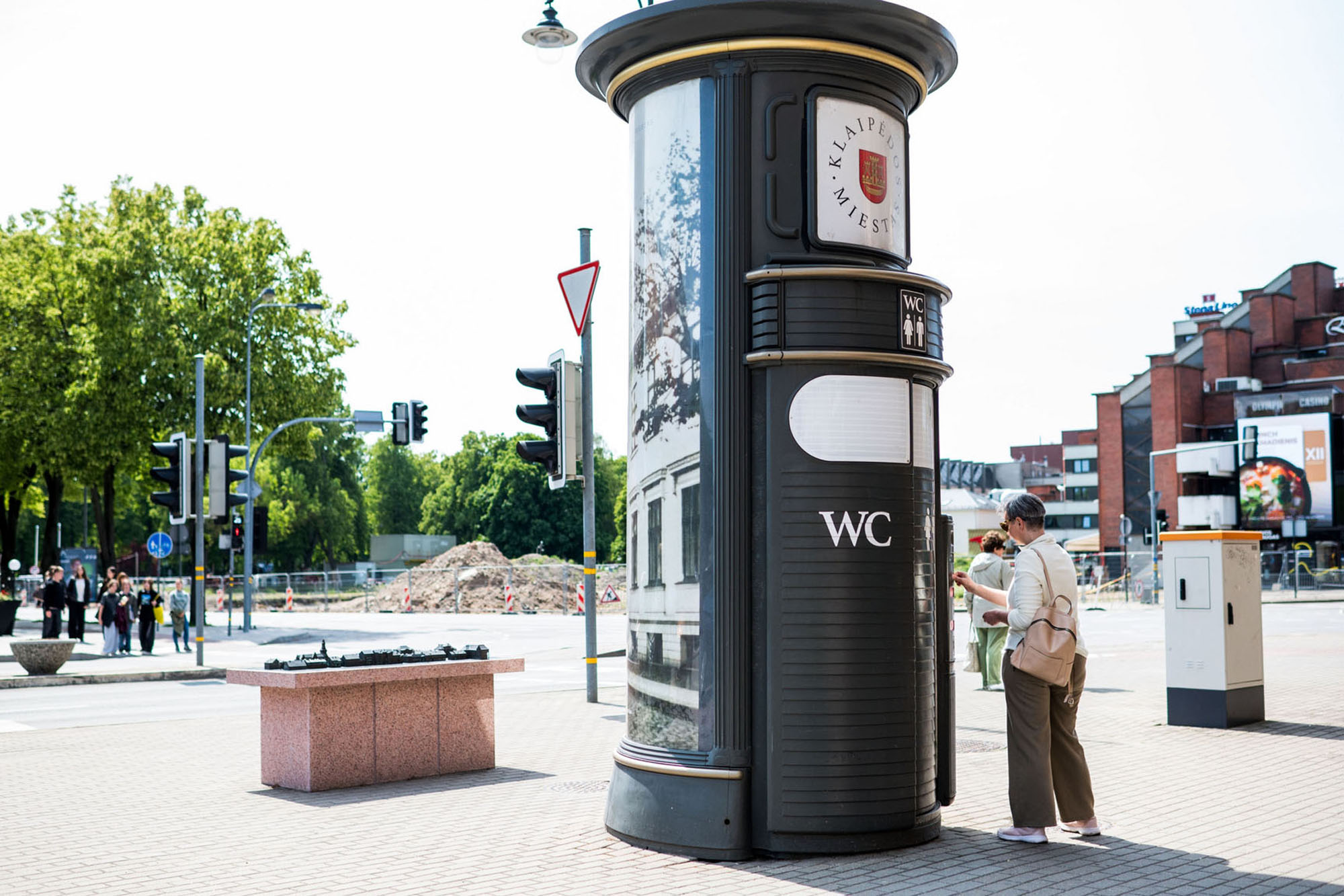Liepų gatvės pradžioje ir Karlskronos aikštėje pastatyti kiek kitokio tipo viešieji tualetai su miesto vaizdų nuotraukomis.