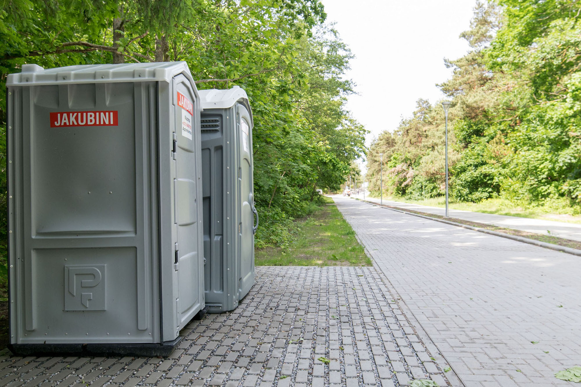 Giruliuose prie tako į paplūdimį pastatyti du biotualetai: vienas iš jų skirtas neįgaliesiems.