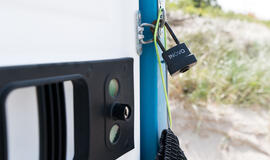 Pačiame paplūdimyje yra kavinės aptarnaujamas biotualetas. Jis buvo užrakintas, nes kavinė dar nedirbo.