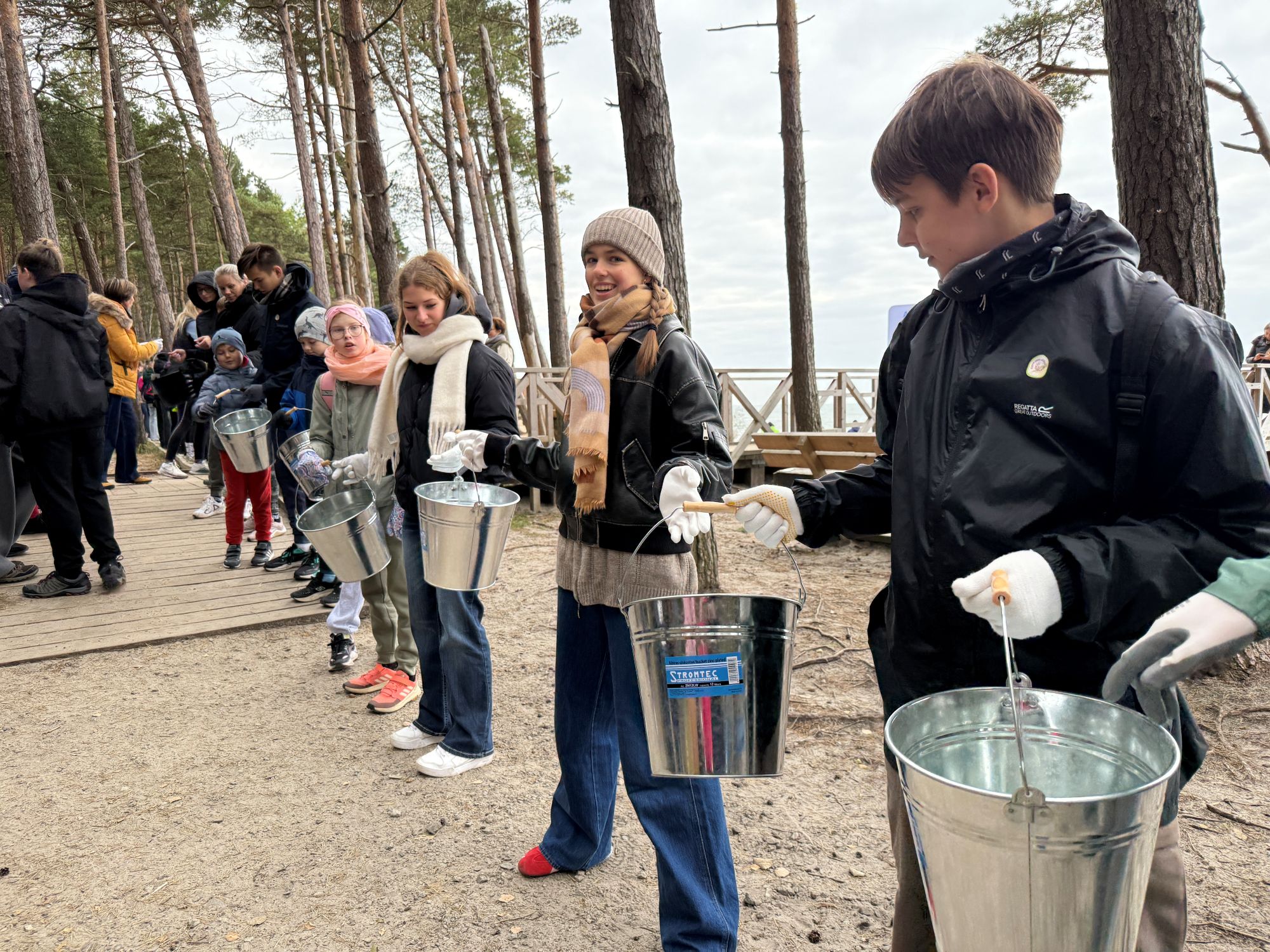 Po darbų savanoriai buvo kviečiami susiburti prie Pajūrio regioninio parko lankytojų centro, kur talkininkų laukė garuojanti arbata ir sultinys, gardūs užkandžiai bei kibinai.