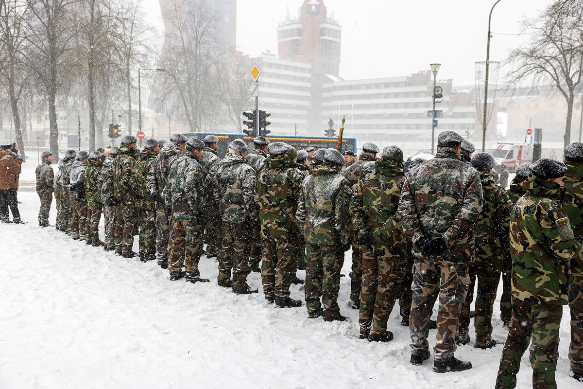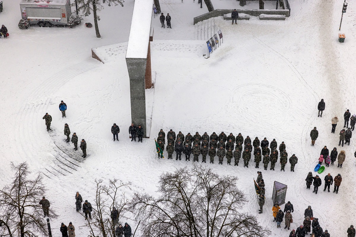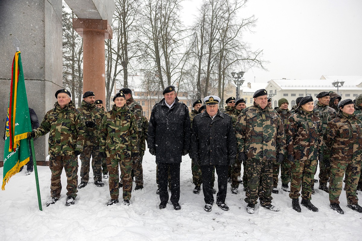 Ir šių metų vėjuotą bei snieguotą pirmąją dieną Lietuvos šaulių sąjungos Vakarų (Jūros) šaulių 3-iosios rinktinės šauliai užlipo ant bokšto ir nuleidę seną trispalvę, iškilmingai iškėlė naują.