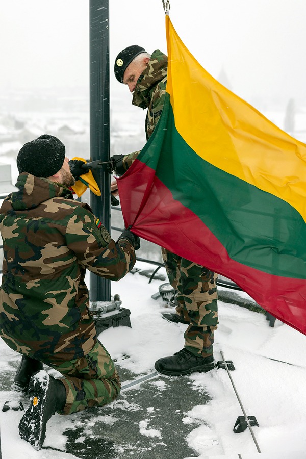 Trispalvę iškėlė šauliai Aleksas Pašilis ir Jonas Šilinskas.