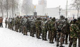 Ant Klaipėdos valstybinio muzikinio teatro bokšto ją kelia šauliai.