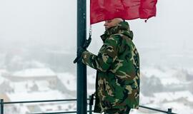 Šauliai lipo ant Muzikinio teatro bokšto: virš uostamiesčio suplazdėjo nauja trispalvė