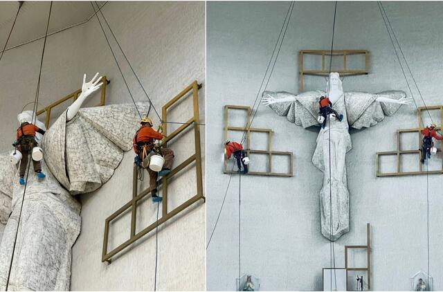 (4)Šios bažnyčios klebonas Viktoras Ačas pasidalijo nuotraukomis, kuriose matyti, kaip valoma centrinė Jėzaus statula ir perdažomos kai kurios detalės.