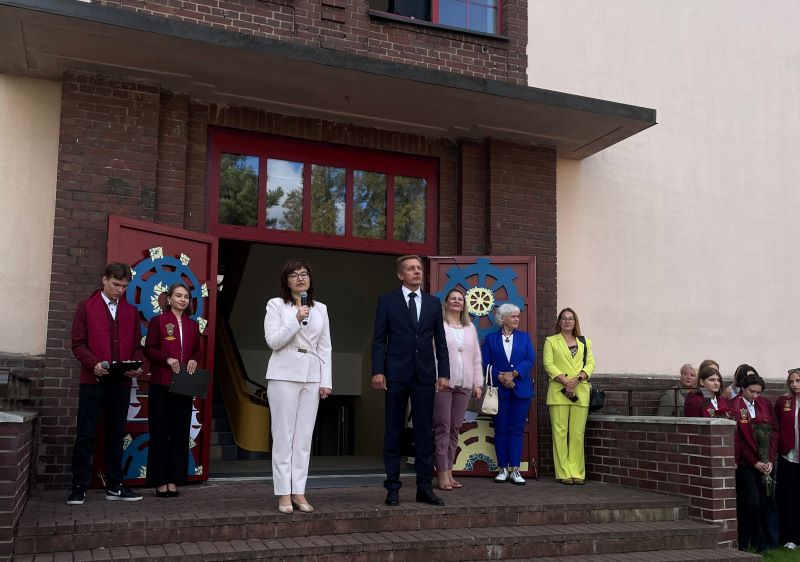 (3)Gimnazijoje viešėjęs Klaipėdos miesto meras A. Vaitkus oficialiai atidarė naująją mokiniams ir kitiems bendruomenės nariams skirtą poilsio zoną ir pagyrė gimnazijos direktorę D. Križinauskaitę už idėją ir projekto įgyvendinimą.