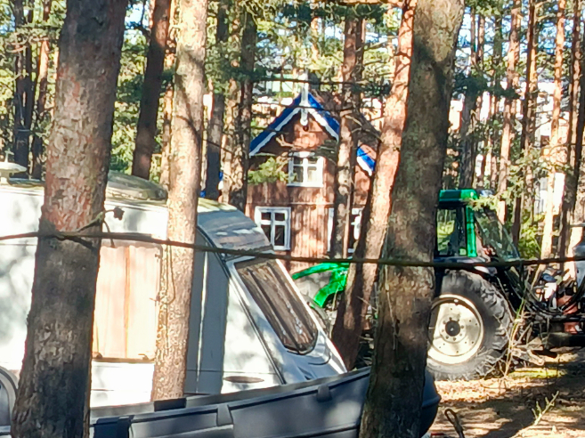 Tiesa, „idilė“ greičiau su kabutėmis. Teritorijoje stūkso krūvos įvairių senų statybinių medžiagų, rietuvės kur papuola sukrautų malkų, senas kemperis, galbūt miškininkų technika.