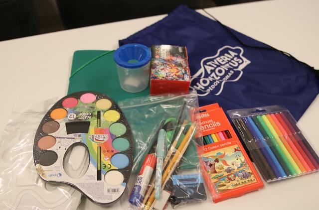 Krepšelius sudaro daugiau nei 20 skirtingų priemonių. Juose vaikai ras ergonomišką plunksnakotį su kapsulėmis, sąsiuvinių, flomasterių ir pieštukų, įvairaus dvipusio popieriaus ir kartono.