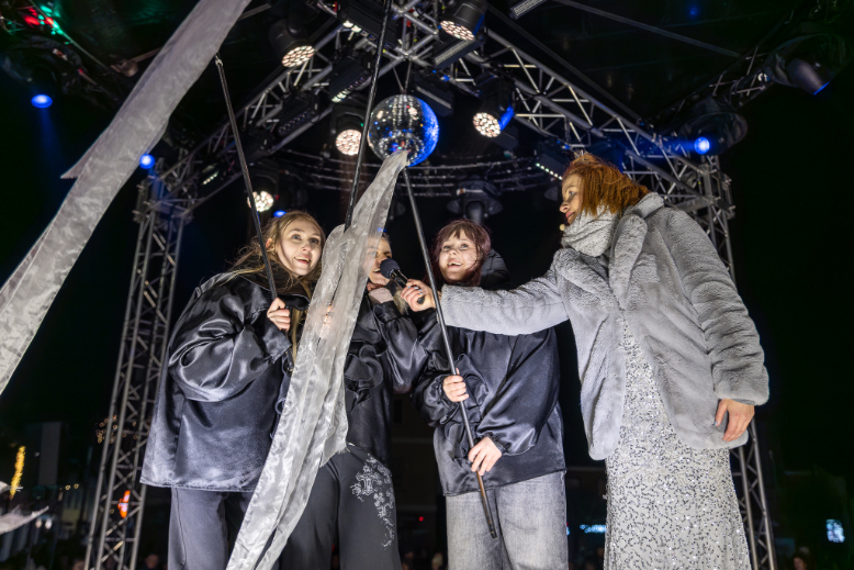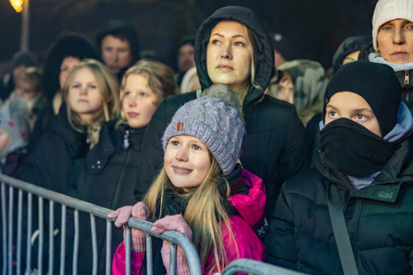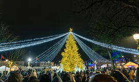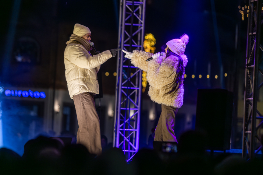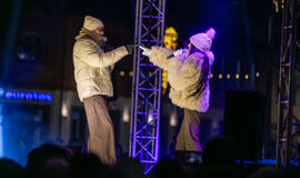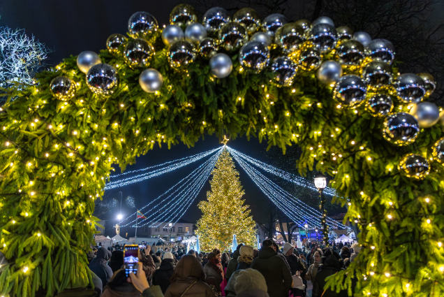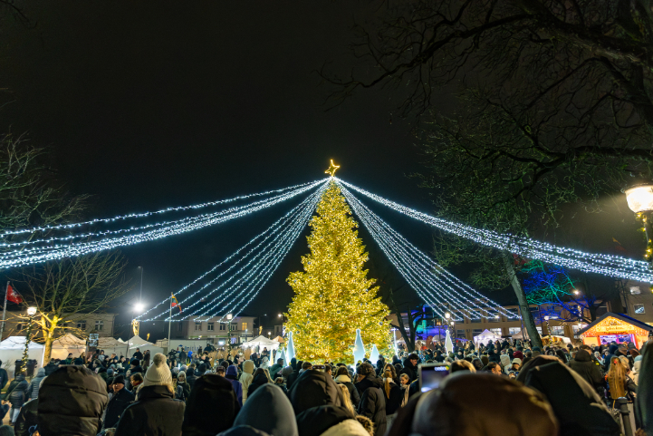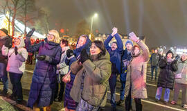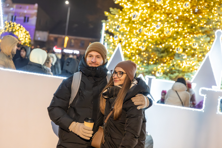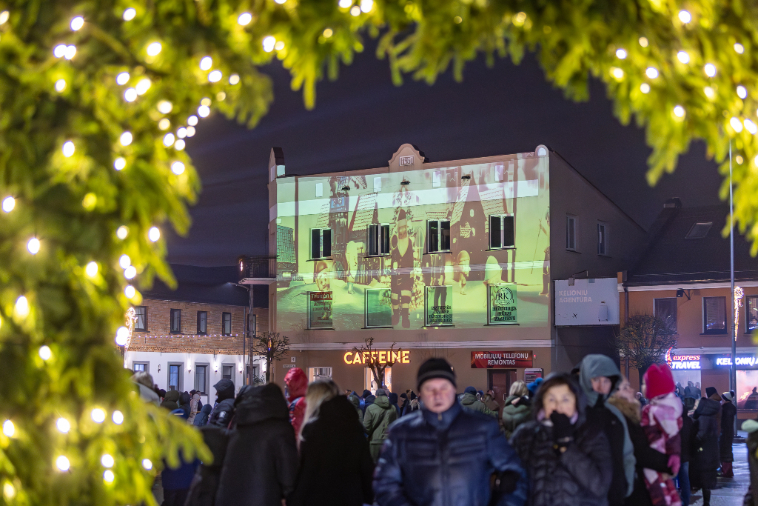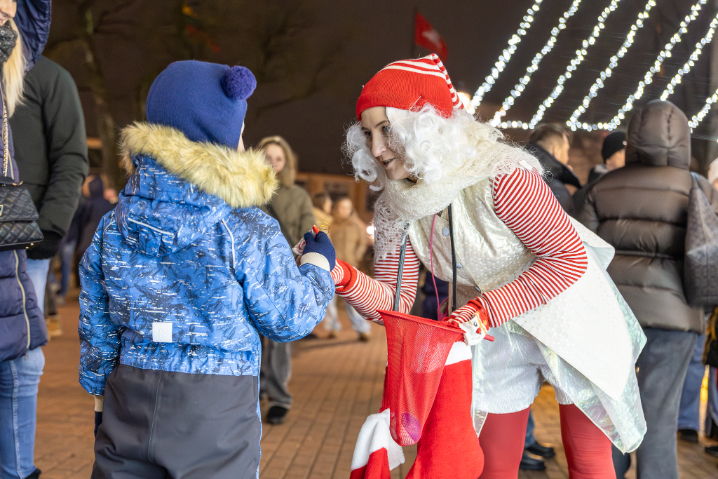 Susirinkusiųjų akis taip pat džiugino ant Rotušės aikštės 4-ojo pastato atgijusios „Kalėdinės istorijos“, aikštės skverą apgaubusi instaliacija „Šviesų magija“. Tą vakarą aikštė buvo pilna ne tik šviesų ir garsų, bet ir kvapų – arčiau prieiti viliojo iš mugių palapinių sklindantis įvairių gardėsių kvapas.