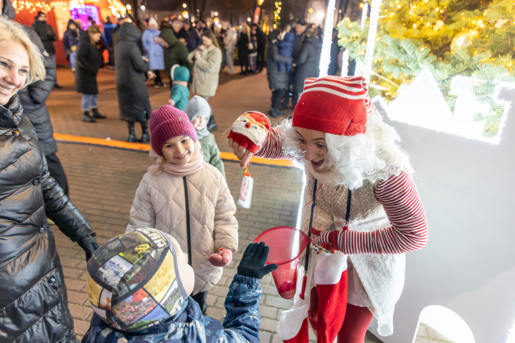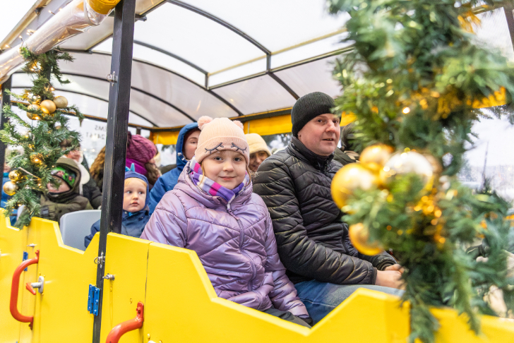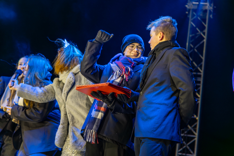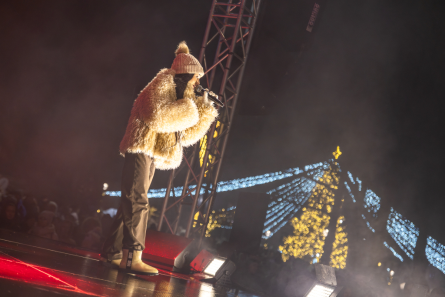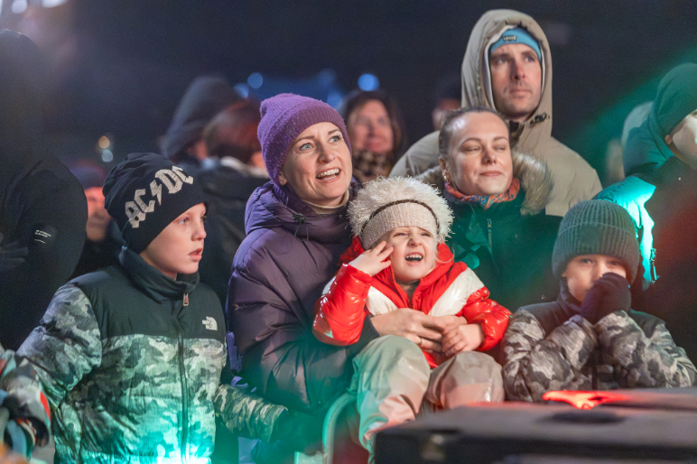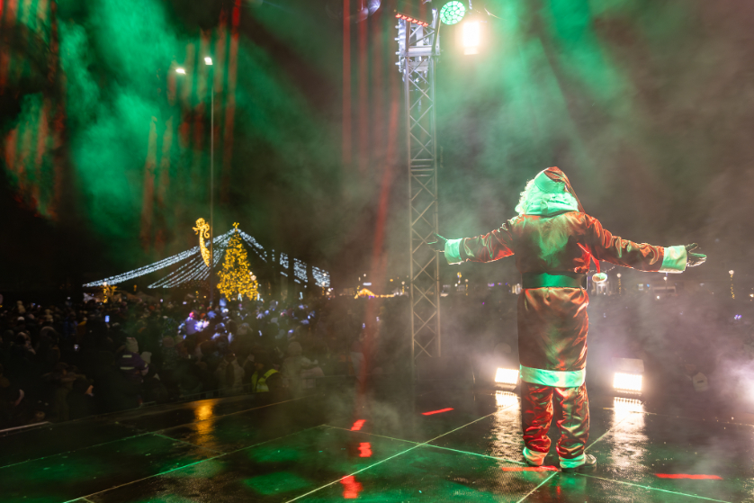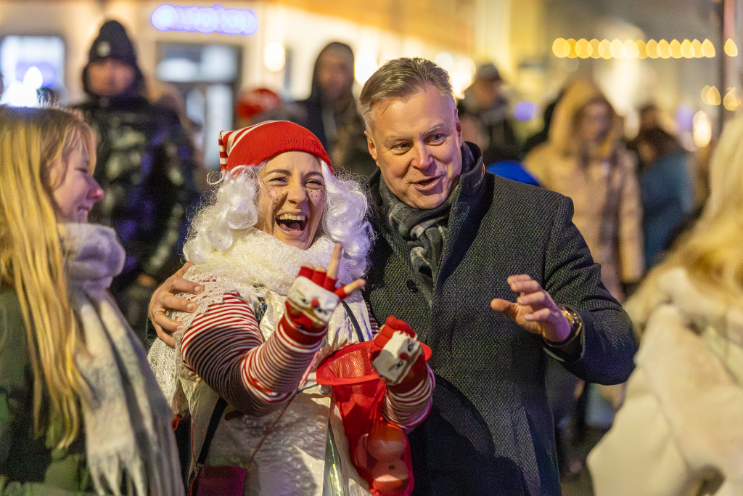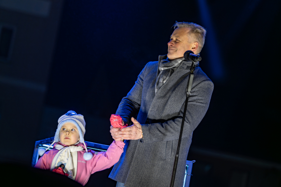 Susirinkusiųjų akis taip pat džiugino ant Rotušės aikštės 4-ojo pastato atgijusios „Kalėdinės istorijos“, aikštės skverą apgaubusi instaliacija „Šviesų magija“. Tą vakarą aikštė buvo pilna ne tik šviesų ir garsų, bet ir kvapų – arčiau prieiti viliojo iš mugių palapinių sklindantis įvairių gardėsių kvapas.