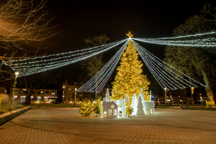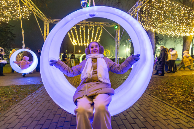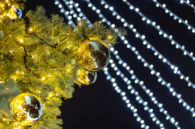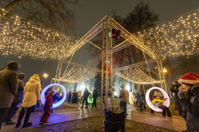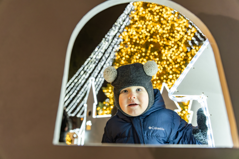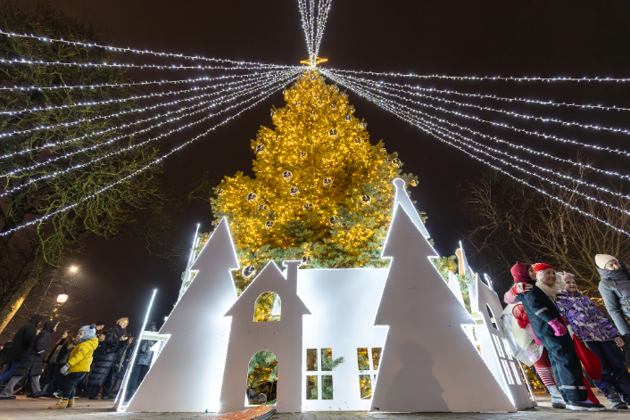 Kalėdų medį puošia net 20 iš tūkst. lempučių girlianda, pasakišką vaizdą kuria ir LED blykstės bei 200 aukso bei sidabro spalvos rutulio formos žaislų. O žengti į šventišką erdvę kviečia spindintys vartai, prie kurių pasitinka lyg iš miško pasakos atšuoliavę išdidūs elniai.
