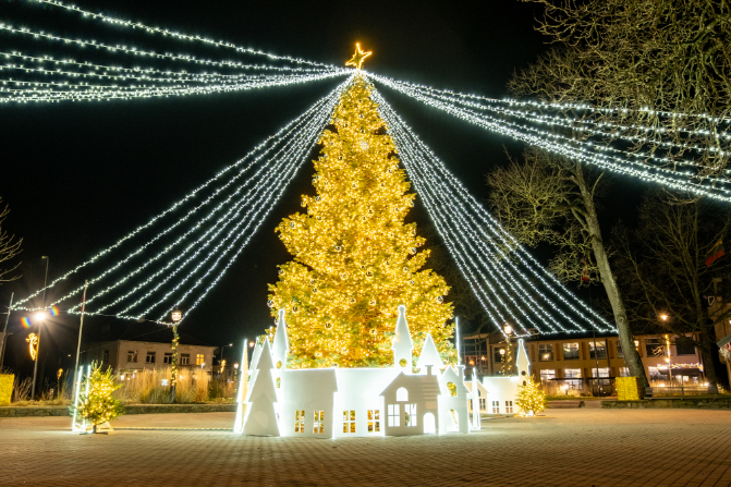 (1)Kretingiškiai jau ketvirtą kartą įžiebė pačių gyventojų dovanotą natūralią eglę, šiemet ji – kretingiškio Dovydo Gaidjurgio dovana.