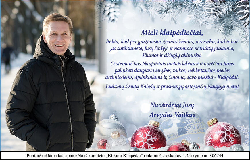 TOP VerslasDarbdaviai pasišvaistė atlyginimais: metų pabaigoje darbuotojams pinigų nepagailėta LietuvaDarbėnai – kaip laimėję aukso puodą, po milijoną – kasmet (11) SveikataSunegalavusi pacientė pataria vengti vienos ligoninės: „Ten mane tiesiog laikė, bet negydė“ (3) Nauji AktualijosNavigacijos programėlės „Waze“ vartotojai fiksuoja techninius sutrikimus PasaulisKolumbijoje sudužo lėktuvas: tarp žuvusiųjų – žinomas kongresmenas ŽmonėsBuvęs Jennifer Lopez vyras 57-erių dainininkas Marcas Anthony aštuntą kartą taps tėvu KriminalaiSėdęs prie BMW vairo, pamiršo KET: taikiniu tapo kitas BMW ŽmonėsFutbolo legenda Cristiano Ronaldo sužadėtinę Georginą pasveikino įspūdinga „Rolex“ dovana VE > Aktualijos > Lietuva Lietuva Arvydas Vaitkus: linkiu daugiau vienybės, taikos, neblėstančios meilės (2) 2022-12-24 07:00 Arvydas Vaitkus sveikina su laukiamiausiomis žiemos šventėmis. NT brokerė Rūta Užandytė: būstas už milijoną – jau ne retenybė Istorikas Vasilijus Safronovas: po karo Klaipėdoje kas ką norėjo, tas tą ir darė Šiuo metu skaitomiausi Trijų Zodiako ženklų gyvenime baigiasi užsitęsusi „juodoji juosta“: kada jie pagaliau lengviau atsikvėps Šie Zodiako ženklai tuoj ištrauks laimingą bilietą ir pasakiškai praturtės Klaipėdos meras Arvydas Vaitkus rangovams: arba valote, arba slidinėsite patys Komentarai Šiuo metu skaitomiausi Hortenzija nebėra favoritė – sodus užkariauja naujas efektingas krūmas Taro kortų horoskopas sausio 29 dienai: Mergelėms – kantrybė, Šauliams – netikėtas posūkis Rašyti komentarą Jūsų vardas Komentaras Apie teksto formatus Plain text HTML žymės neleidžiamos. Linijos ir paragrafai atskiriami automatiškai Web page addresses and email addresses turn into links automatically. Sutinku su taisyklėmis This site is protected by reCAPTCHA and the Google Privacy Policy and Terms of Service apply. Rekomenduojame Darbdaviai pasišvaistė atlyginimais: metų pabaigoje darbuotojams pinigų nepagailėta Darbėnai – kaip laimėję aukso puodą, po milijoną – kasmet Sunegalavusi pacientė pataria vengti vienos ligoninės: „Ten mane tiesiog laikė, bet negydė“ Sidebar placeholder Taip pat skaitykite LietuvaSkrydis iš Vilniaus į Dubajų tapo tikru iššūkiu: pilotas pranešė apie gedimą LietuvaKelininkai: pagrindiniuose šalies keliuose eismo sąlygos stabilizuojasi LietuvaŽiniasklaida: „botai“ socialiniame tinkle kursto visuomenę dėl Kapčiamiesčio poligono LietuvaŠalies mokyklose organizuojamas bandomasis lietuvių kalbos ir literatūros egzaminas LietuvaPremjerė sureagavo į Skvernelio pareiškimus dėl Cichanouskajos: kviečiu sugrįžti į realybę LietuvaTeismas Birštono merę Nijolę Dirginčienę išteisino „čekiukų“ byloje LietuvaDarbėnai – kaip laimėję aukso puodą, po milijoną – kasmet LietuvaŽiema negaili nei žmonių, nei gyvūnų: arklį „prarijo“ ledinė eketė Nauji KriminalaiVaikų kelionė į mokyklą baigėsi pakelės griovyje: teko atkasinėti sniego prispaustas pavojingai pasvirusio autobuso duris (1) KriminalaiTvarto stogas sniego svorio neatlaikė: karvės vos išnešė sveiką kailį OraiArtėja pati šalčiausia diena ir naktis: meteorologai skelbia, kas laukia AktualijosNavigacijos programėlės „Waze“ vartotojai fiksuoja techninius sutrikimus PasaulisKolumbijoje sudužo lėktuvas: tarp žuvusiųjų – žinomas kongresmenas ŽmonėsBuvęs Jennifer Lopez vyras 57-erių dainininkas Marcas Anthony aštuntą kartą taps tėvu KriminalaiSėdęs prie BMW vairo, pamiršo KET: taikiniu tapo kitas BMW ŽmonėsFutbolo legenda Cristiano Ronaldo sužadėtinę Georginą pasveikino įspūdinga „Rolex“ dovana PodkastaiNT brokerė Rūta Užandytė: būstas už milijoną – jau ne retenybė VerslasPalanga pasirašė ilgalaikę garsiosios vilos „Auska“ koncesijos sutartį: investicijos sieks per 34 mln. eurų Klaipėdos pulsasSavivaldybė siekia perimti ir sutvarkyti svarbios gatvės dalį (1) KlaipėdaSiekiama padėti labiausiai pažeidžiamiems darbo rinkos dalyviams ŽmonėsMirė daugelyje garsių filmų vaidinusi Ukrainos kino žvaigždė: po vyro mirties prarado norą gyventi (2) PasaulisRusijos karas prieš Ukrainą: WSJ nurodė tris galimus scenarijus 2026-iesiems Load More
