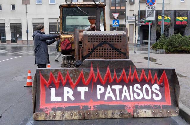 Dėl LRT įstatymo pataisų rengiamas dar vienas mitingas, prie Seimo pastatytas buldozeris