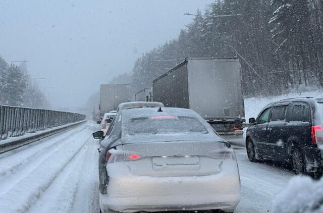 „Prie įvažiavimo į Vilnių eismas sustojo, ilgokai nepajudame iš vietos, daug avarijų sniego – gausybė, valytuvai važiuoja prieš eismą.