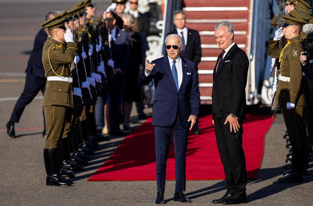 JAV ir Lietuvos lyderiai aptars „aptars paramą Ukrainai, NATO rytinio flango stiprinimo priemones, atsaką į Baltarusijos remiamą Rusijos karinę agresiją prieš Ukrainą“, anksčiau skelbė Lietuvos prezidentūra.