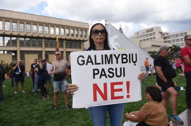 Ne kartą protestuose prieš Galimybių pasą dalyvavę žmonės taip ir neišgirdo, ar šis dokumentas atitinka Konstituciją. Stasio Žumbio nuotr.