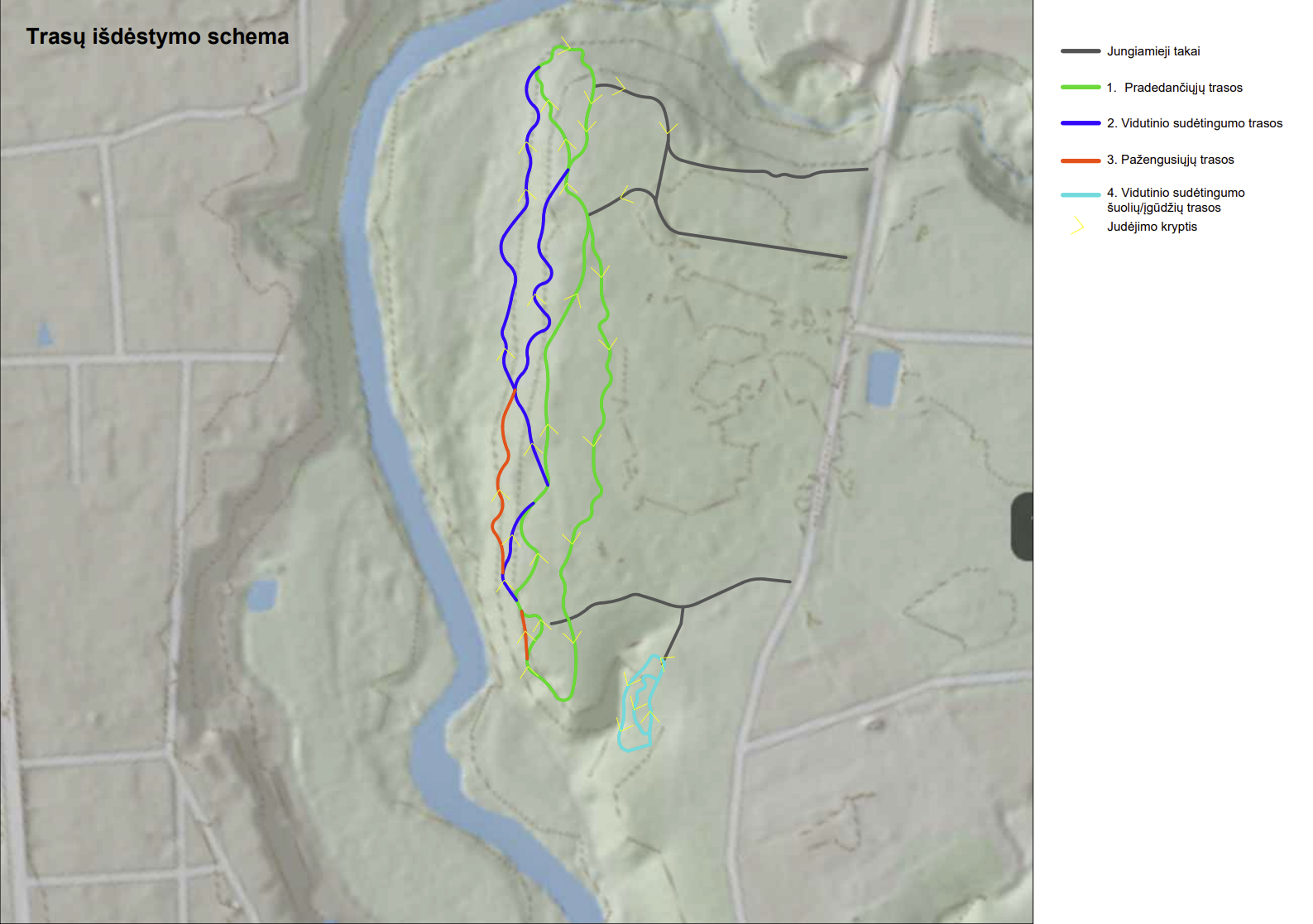 Aukštesnio sudėtingumo trasa bus metro pločio, ilgis – ne mažesnis kaip 220 metrų. Čia bus stačių įkalnių ir nuokalnių.