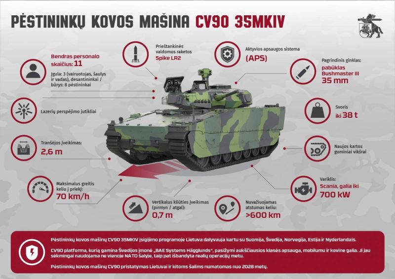 CV90 platforma, kurią gamina Švedijos įmonė „BAE Systems Hägglunds“, pasižymi aukščiausios klasės apsauga, mobilumu ir kovine galia. Ji jau sėkmingai naudojama ne vienoje NATO šalyse, taip pat išbandyta realių operacijų metu.