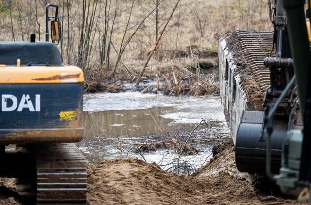 „Visą naktį toliau buvo siurbiama, ryte užsipildė dumblo baseinai, šiuo metu išvežinėjamas sukauptas dumblas ir įrenginėjami nauji baseinai, atlaisvinus juos bus toliau valoma pelkė, taip pat planuojama didinti veikiančios technikos kiekį“, – informavo kariuomenė.