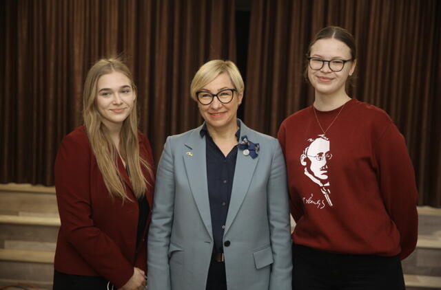 Salėje pakilo tik dvi rankos – Mantės ir Benitos, su kuriomis ministrė įsiamžino nuotraukoje.