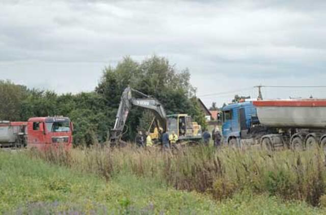 Pagal įstatymą jis turėtų vežti į greta esantį sklypą, bet jau kelios dienos, kai važiuoja didžiulės sunkiasvorės mašinos, kurios nežinoma kryptimi išveža perteklių.