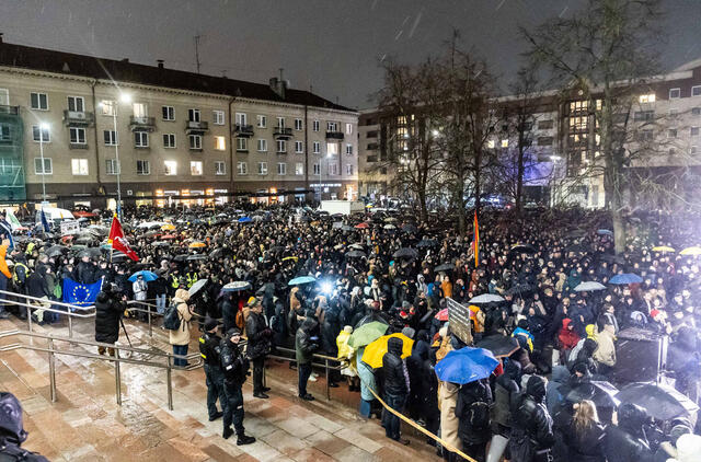 Kone valandą trukęs protestas Vilniuje baigėsi susirinkusisiems paskandavus žodį „Lietuva“ ir sugiedojus Himną.