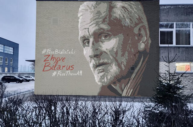 Prieš Baltarusijos ambasadą Vilniuje – neofreska Nobelio taikos laureatui Bialiackiui