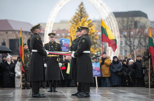 Katedros aikštėje vyksiančioje ceremonijoje dalyvaus ir Seimo pirmininkas S. Skvernelis, krašto apsaugos viceministras Karolis Aleksa bei Vilniaus miesto savivaldybės vicemerė Simona Bieliūnė.