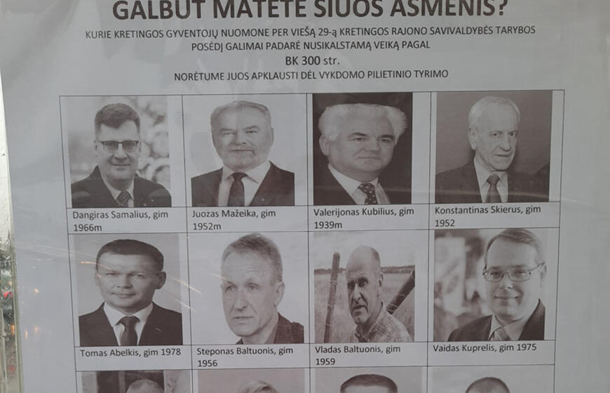 Policija nerado požymių, kad gegužės pradžioje Kretingos viešosiose erdvėse iškabintas plakatas apšmeižė jame pavaizduotus Kretingos rajono tarybos politikus.