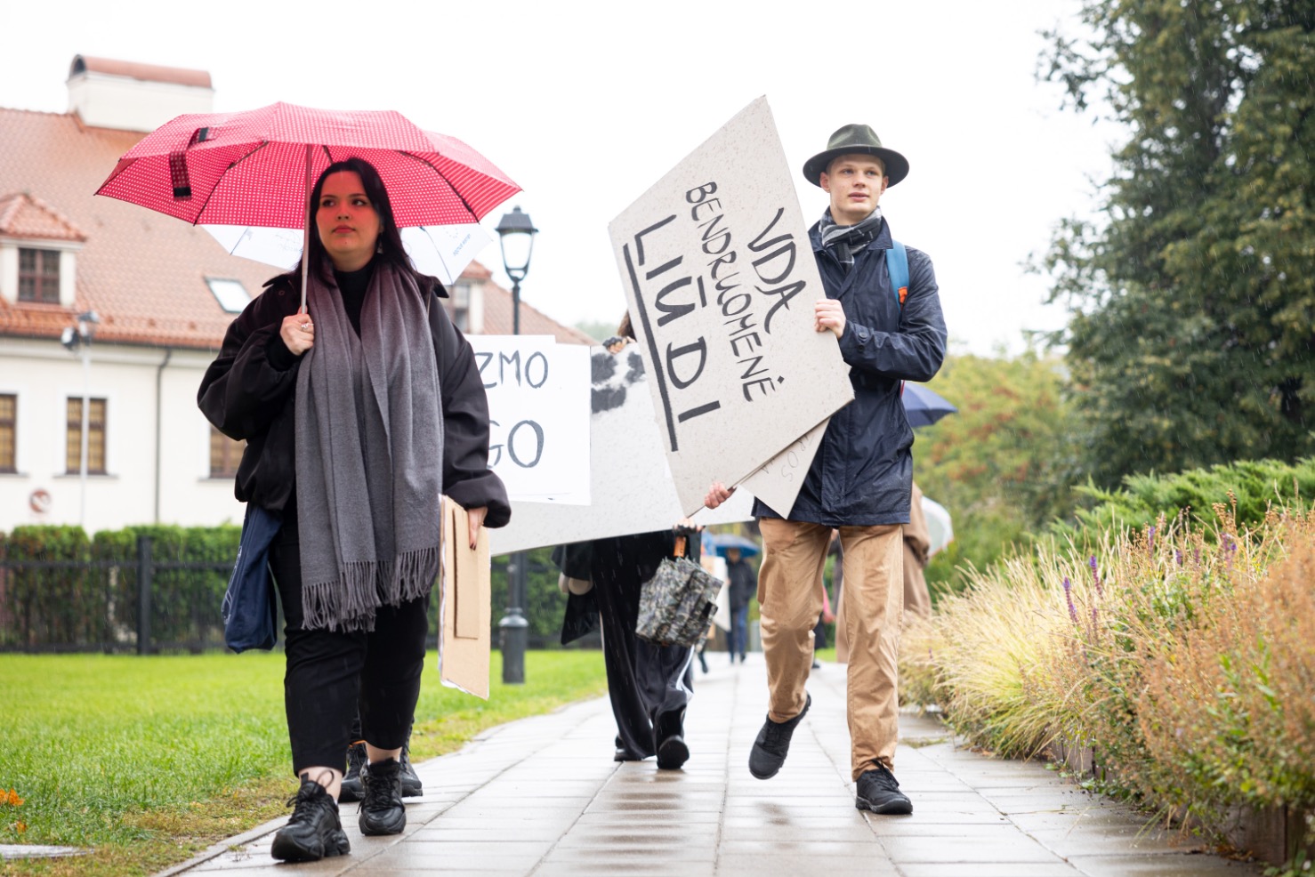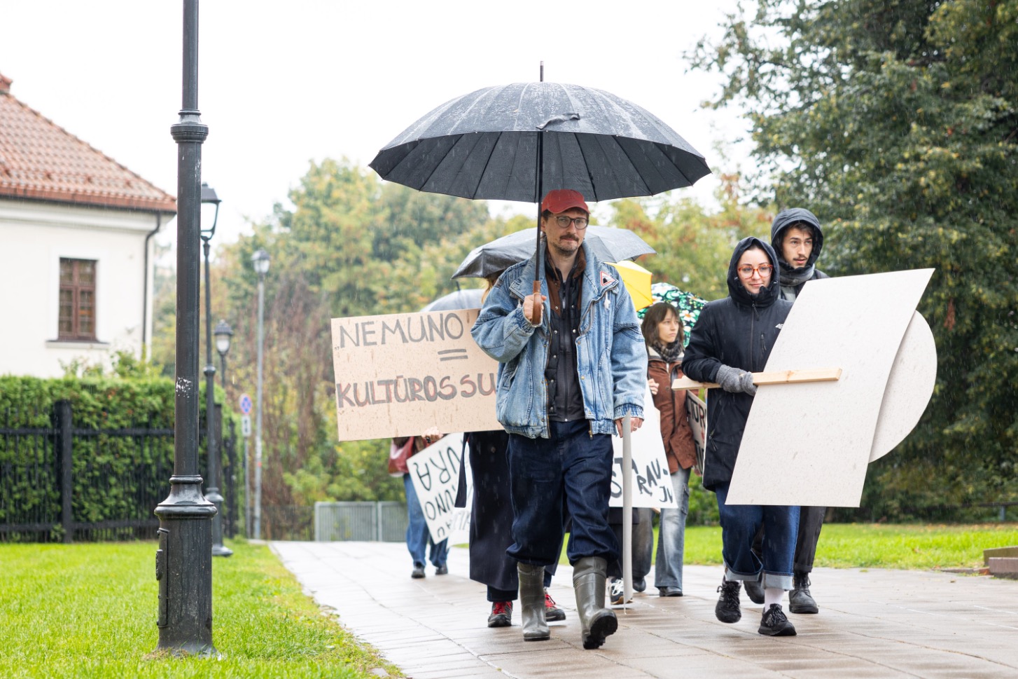 Galiausiai paramą protestuojantiems kultūrininkams reiškianti susirinkusi minia patraukė sostinės Gedimino prospektu link Vilniaus universiteto didžiojo kiemo.