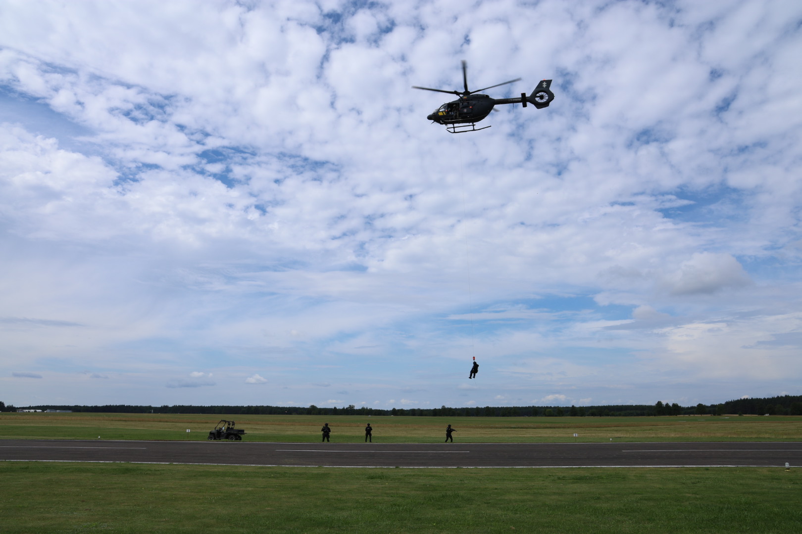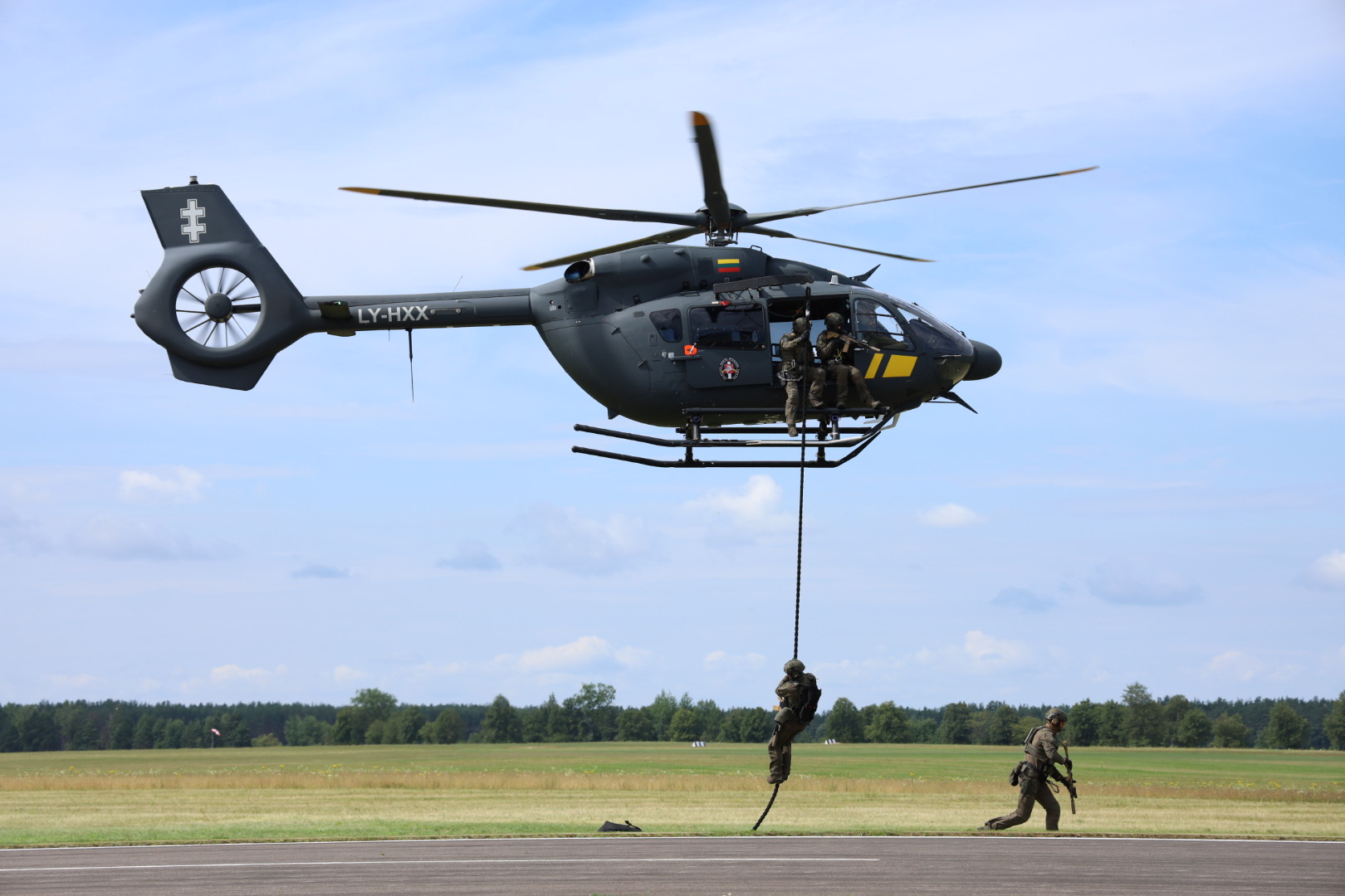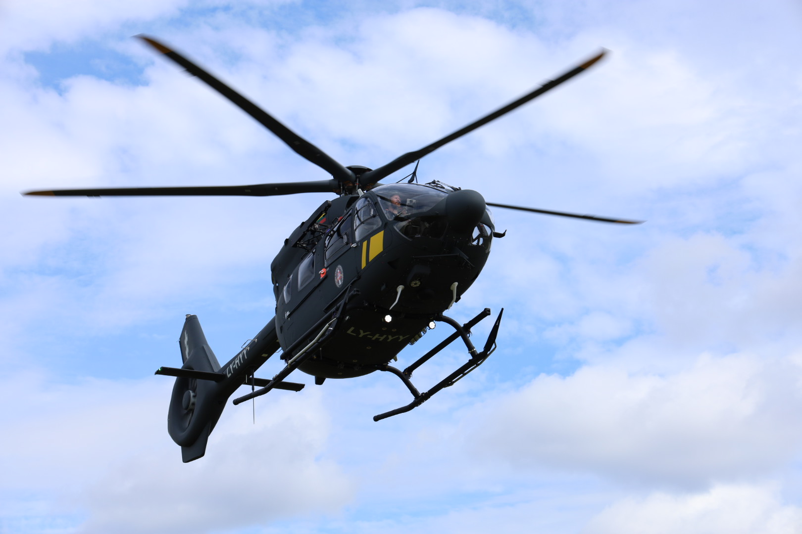Renginyje buvo pristatyti trys daugiafunkciai „Airbus H145 D3“ sraigtasparniai ir vertikalaus pakilimo bepiločių orlaivių sistemą.