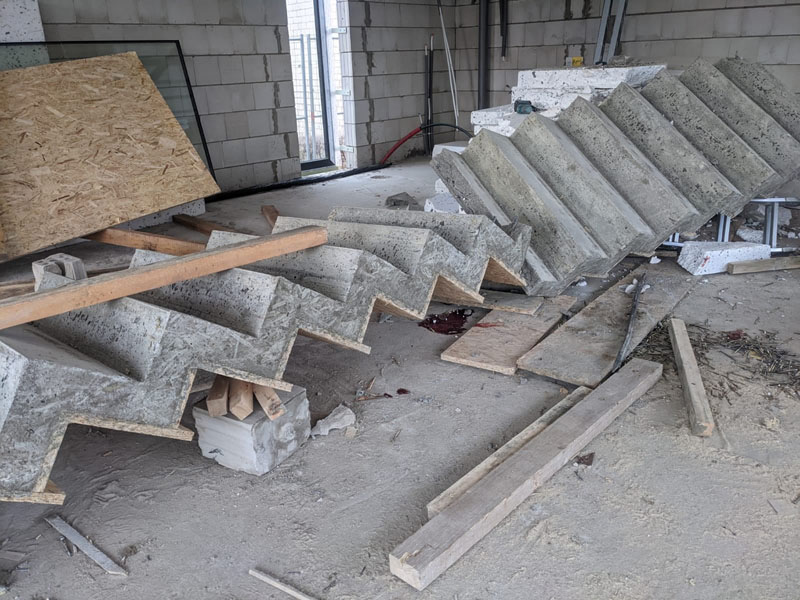 „Visiškas brokas. Laiptams buvo naudotas smėlbetonis, kuris nebent grindims tinka. Jau suradome įmonę, kuri išardys kitus trejus laiptus ir sąskaitą pateiksime brokdariams“, - „Vakarų ekspresui“ pasakojo Simonas Gentvilas. Anot jo, vienam iš nukentėjusių darbininkų jau atliktos net dvi operacijos.
