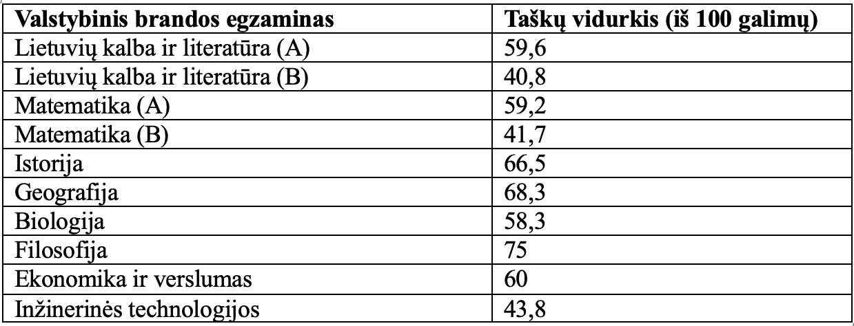 Valstybinio brandos egzamino išlaikymo riba – 35 taškai.