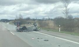 Jaunas „lakūnas“ autostradoje stovinčio vilkiko nepamatė: nusileido aukštyn ratais