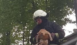 Gelbėjimo operacija baigėsi sėkmingai: išsigandęs katinas nurimo šeimininko rankose