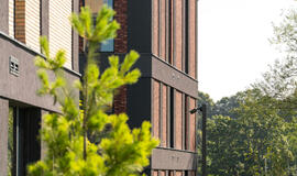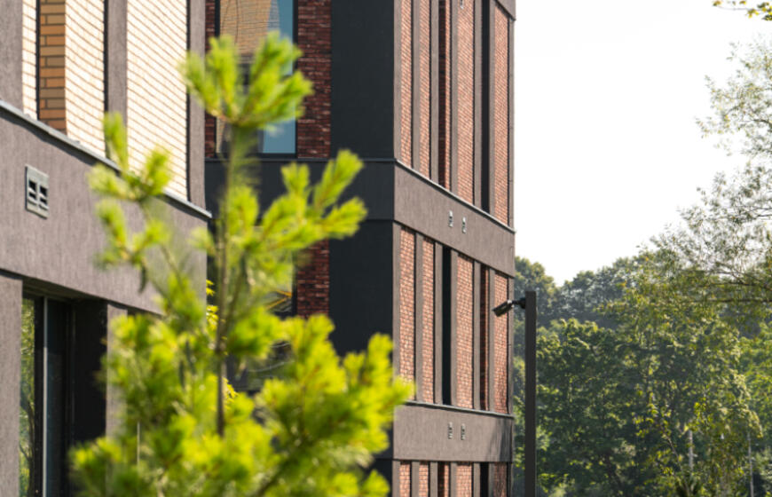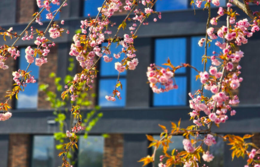 Projekto teritorija apželdinta sakuromis ir skiringais metų laikais žydinčiais augalais