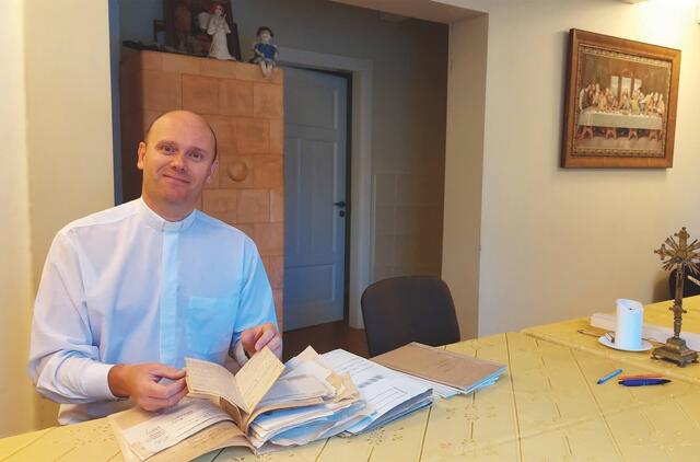 Klebonas Viktoras DAUJOTIS pasidalijo džiaugsmais ir rūpesčiais, kuriais gyvena jau 11 metus, nuo tada, kai buvo paskirtas į Vėžaičių parapiją.