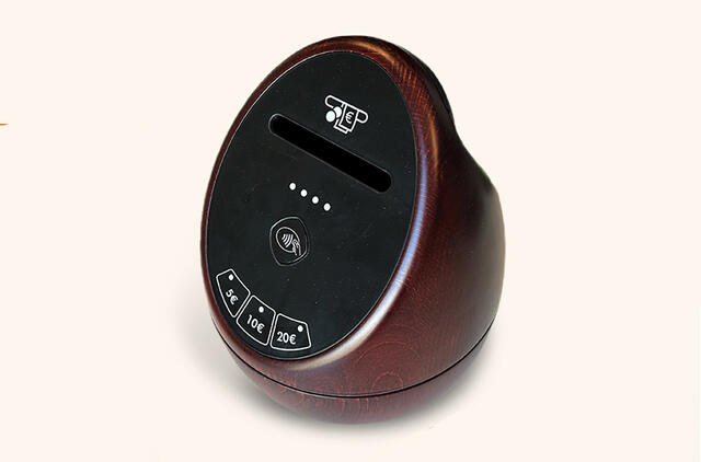 Jame yra numatyta galimybė priimt auką ir grynaisiais pinigais. Tai supaprastina pinigų apskaitymą. Terminale iš karto numatytos trijų dydžių aukojimo sumos, kurios atitinka įprastai grynaisiais aukojamas sumas – tai 5, 10 arba 20 eurų.