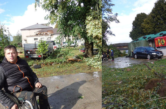Ši gamtos stichija neįgalų kaimo gyventoją Audrių Jušką paliko be pastogės, nepataisomai suniokojo jo automobilį, be kurio vežimėliu judančiam vyrui gyvenimas sustojo.