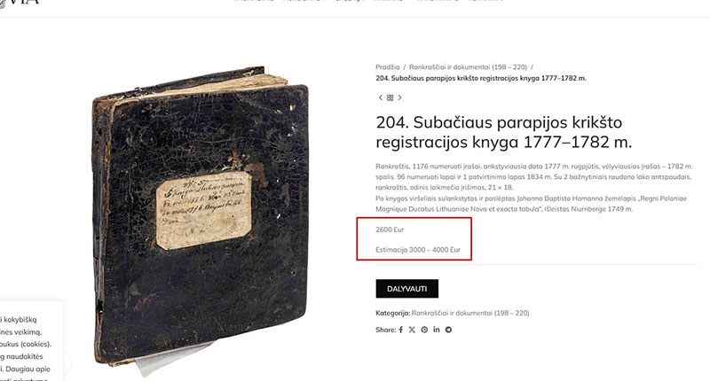 „Vakarų ekspresui“ pavyko išsiaiškinti, kad senoji Subačiaus bažnyčios metrikų knyga iš aukciono buvo pašalinta teisėsaugai pradėjus tyrimą dėl galimos knygos vagystės, kuomet, kilus sujudimui viename iš socialinių tinklų, žinia apie parduodamą knygą pasiekė Subačiaus bažnyčią, ir maldos namai kreipėsi pagalbos į teisėsaugą.