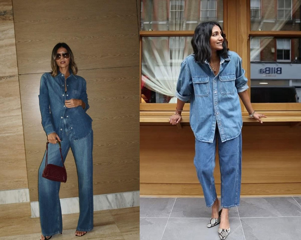 Džinsas su džinsu. Vėl populiarėja derinys, kai džinsas derinamas su džinsu, tačiau dabar svarbu ne parinkti identiškus drabužius, o kurti subalansuotą įvaizdį. Tai numato atspalvių eklektiką ir skirtingų fasonų derinimą. Svarbiausia – kad viskas būtų iš džinsinio audinio.