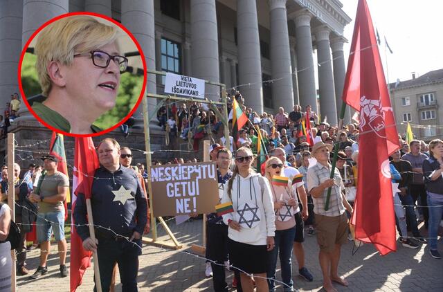 Premjerė apgailestauja, kad šiuo metu dėl COVID-19 ribojimų patiriamus nepatogumus kai kurie protestuotojai prilygina tremtims ar netgi genocidui.
