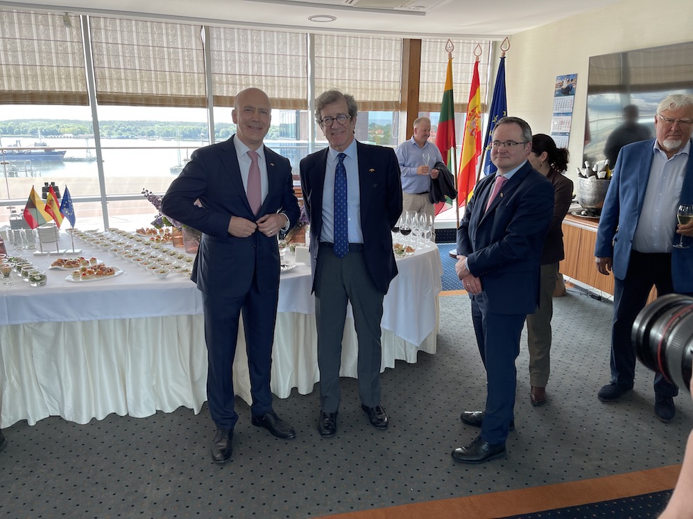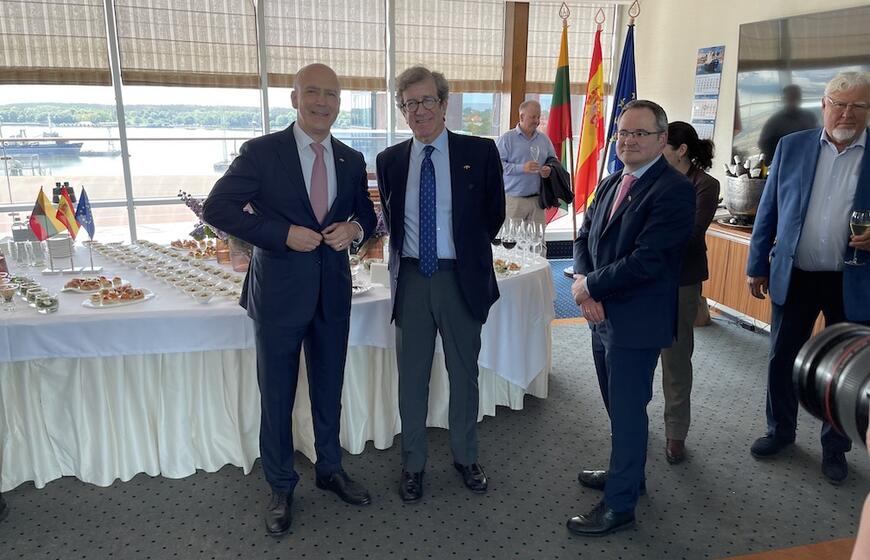Iš garbės konsulo kabineto matosi didžioji uosto dalis. Pasak Klaipėdos mero Vytauto Grubliausko, iš to kabineto mintimis per jūras ir vandenynus tikrai galima nusikelti ir į Ispaniją.