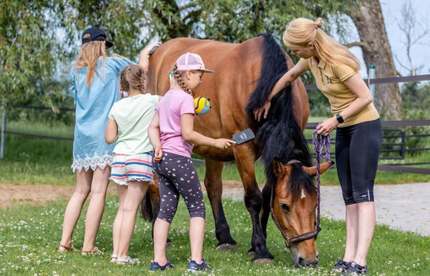 PASIRUOŠIMAS. Pirmiausia vaikams pasiūloma paruošti žirgą joti, šukuoti šepečiu karčius ir kt.