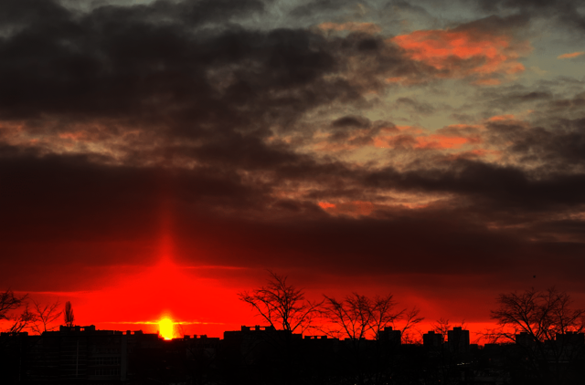 Pasak astronomų, raudona „stulpo“ (tokia pati ir matomų debesų spalva) šviesa matoma todėl, kad saulei esant arti horizonto, raudona šviesa pasiekia ledo kristalėlius, o trumpesnių bangų ilgiu šviesa (žalia, mėlyna) jau būna išsklaidyta ir sugerta atmosferoje. Ledo kristalėliai yra šešiabriauniai ir atmosferoje krisdami žemyn išsidėsto horizontaliai.
