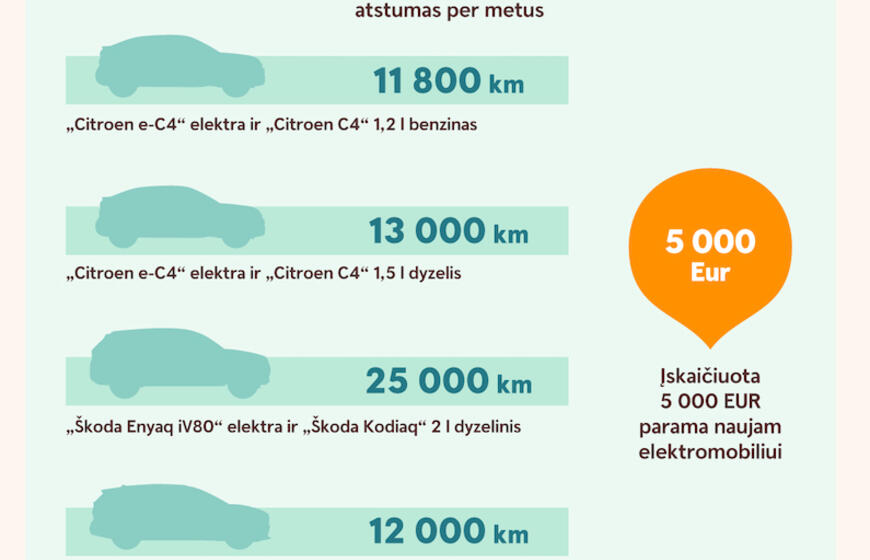 Pasinaudojus APVA parama, elektromobilio atsipirkimas tampa kur kas greitesnis – per metus pakankama nuvažiuoti 11,8 tūkst. km, kad jis taptų tiek pat patrauklus, kiek ir benzininis modelis, ir 13 tūkst. km, kad prilygtų dyzeliniam.