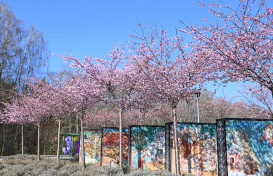 Prieš dvejus metus įrengtame japoniško stiliaus parke prie Žvejų rūmų pasodinti 57 sakurų medeliai. Šiuo metu jie žydi nuostabiais žiedeliais.