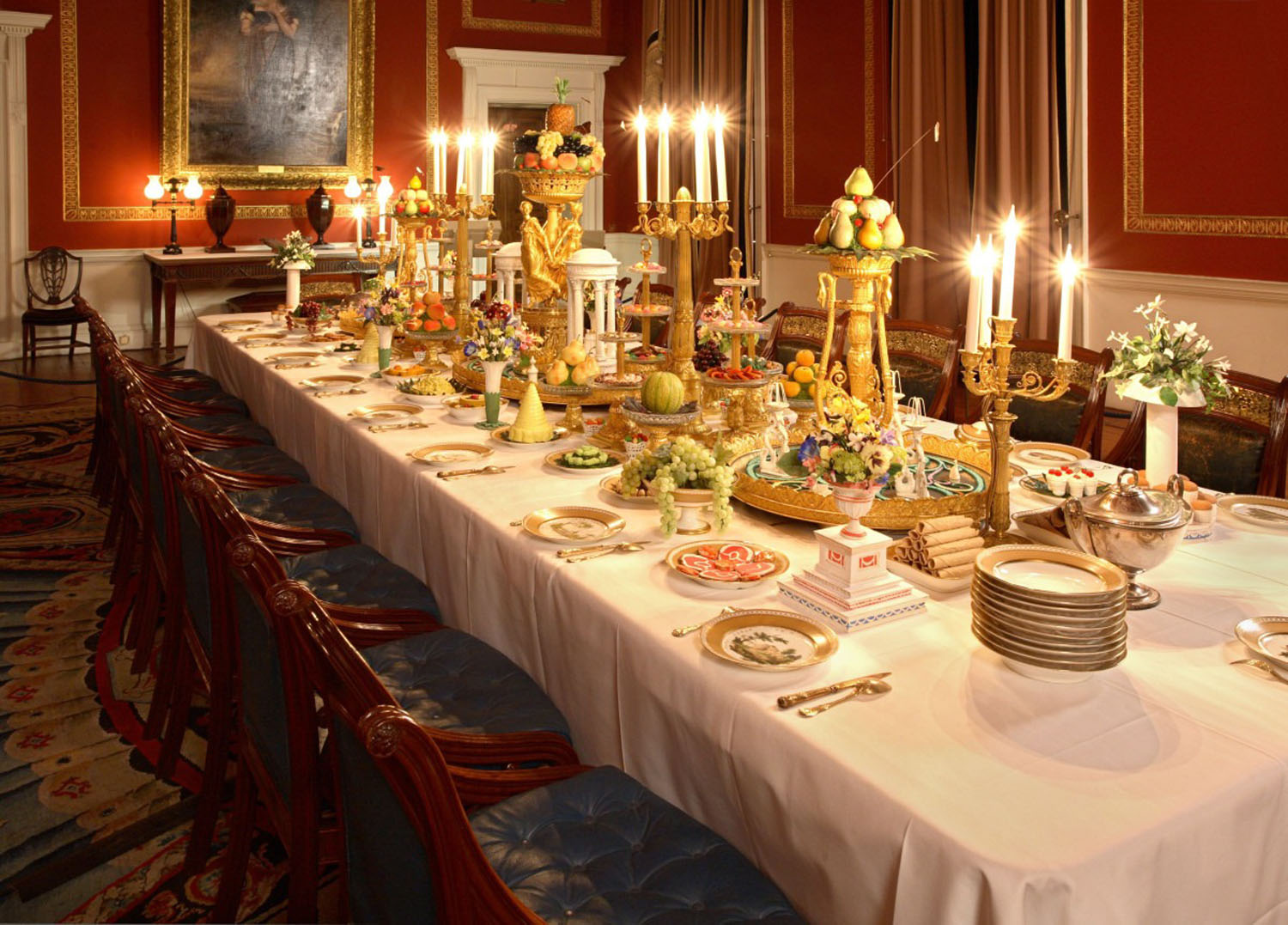 Buvo svarbu ir tai, kaip patiekiama. „Oficialiuose vakarienėse viskas buvo suplanuota iki smulkiausių detalių: kas su kuo sėdi, kokia tvarka patiekiami patiekalai. Svarbiausias vyras – šalia šeimininkės, svarbiausia moteris – šalia šeimininko“.
