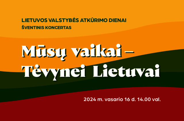 Tęsdami šią tradiciją 2024 m. vasario 16 d. rengiame Lietuvos valstybės atkūrimo paminėjimo tradicinį koncertą „Mūsų vaikai – Tėvynei Lietuvai“!